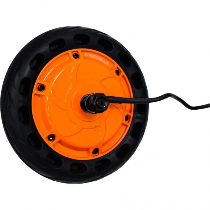 Основа колеса имеет встроенный мотор со всеми необходимыми элементами для его подключения и управления. Шина изготовлена из долговечной резины с ребристой поверхностью, которая обеспечивает хорошее сцепление с поверхностью. Это позволяет ездить по асфальтовой или грунтовой дороге.
